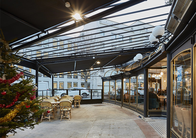 Notre grande terrasse est équipée d’un système de chauffage électrique pour l’hiver et de ventilateurs brumisateurs pour l’été. Les enfants peuvent jouer dehors sans risque, à condition qu’ils aient fini leur assiette !